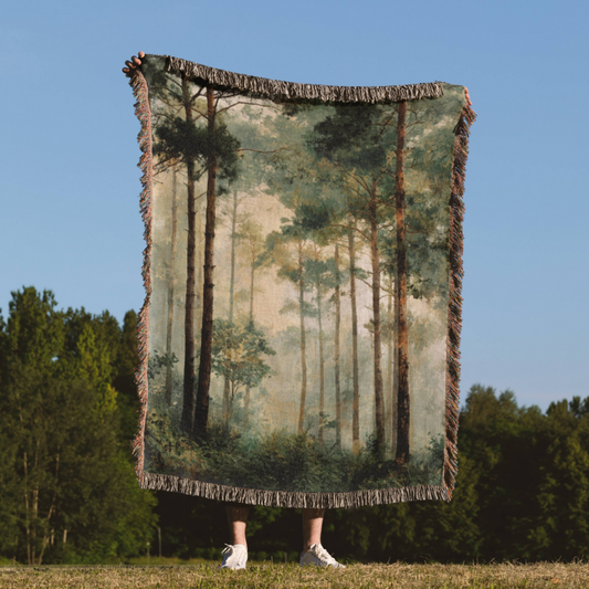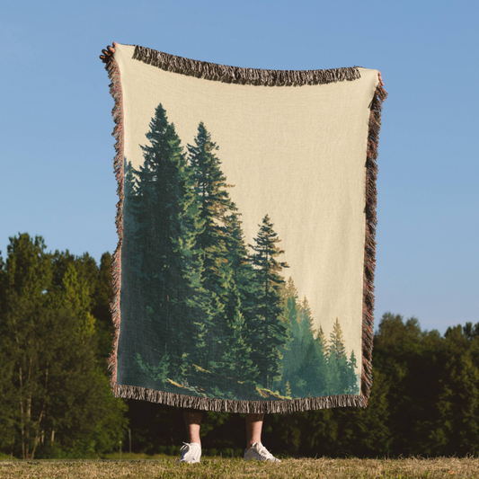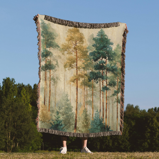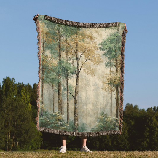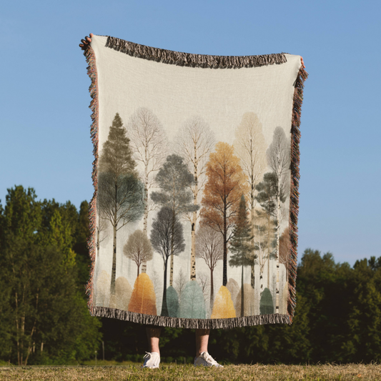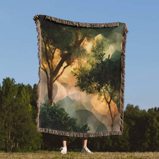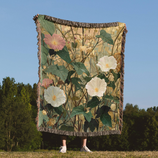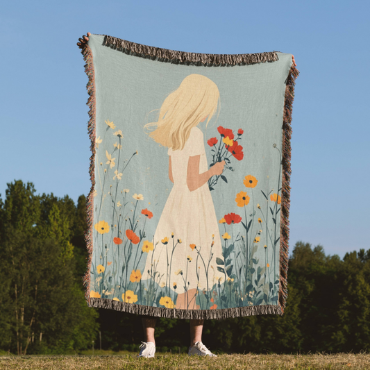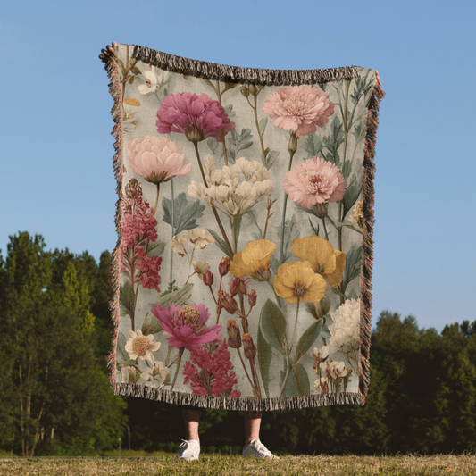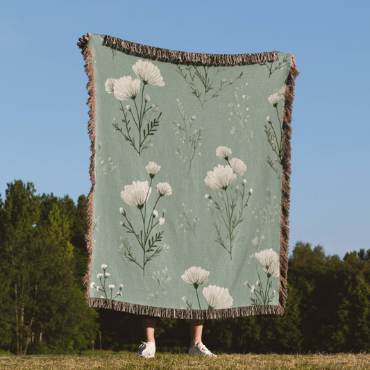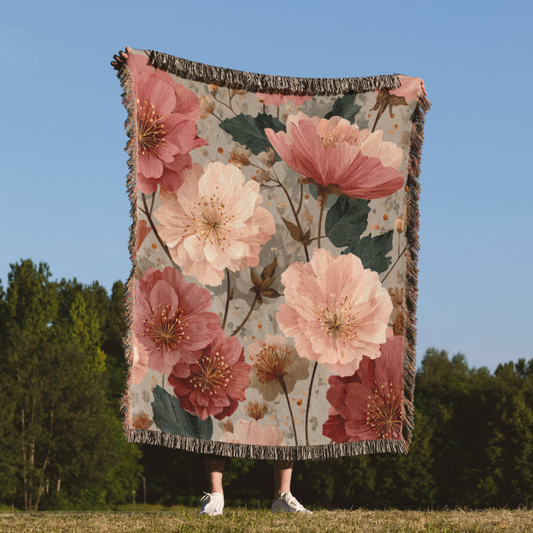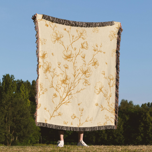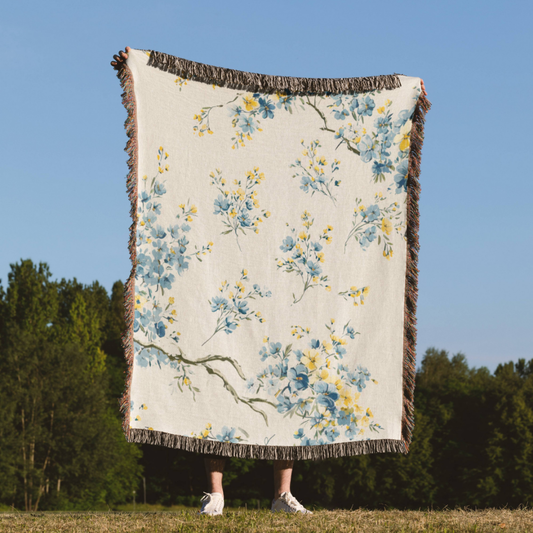 Soft Blue and Yellow Cherry Blossom Woven Blanket