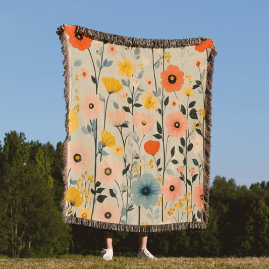 Minimalistic Colorful Inspired Flower Woven Blanket